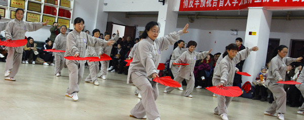 州武术协会会长秦可国发言,他说太极养生协会在学校相关部门的领导下,起到了一个桥梁、纽带的作用,积极响应了政府提倡的全民健身政策,使校园充满动力,也为太极拳提高了知名度。
