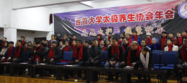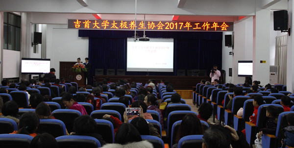 本网讯(学生记者钟兆铭)1月13日,awc777万象城娱乐官网太极养生协会2017工作年会在砂子坳校区老年干部活动中心308会议室举行。万象城官网工会主席龙先琼、常务副主席肖廷飞、湘西州教育与体育局副局长麻建峰、太极养生协会会长李培雄以及校内各职能部门负责人、州县市各位领导参加年会。