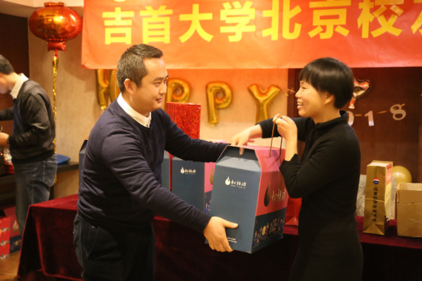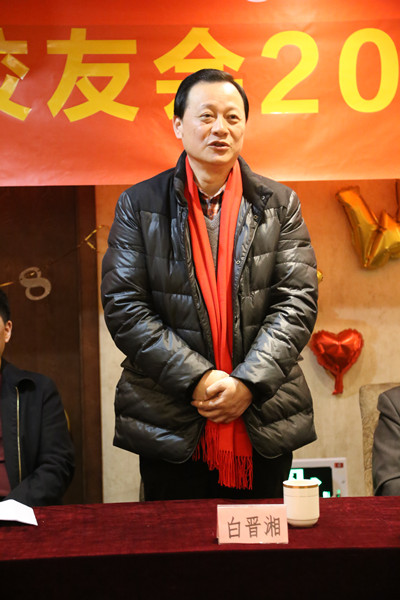 白晋湘在联谊会上致辞。他说,非常高兴参加北京校友的新年团聚,近年来,学校各项事业突飞猛进,各项工作迈上了新的台阶,特别是2017年,学校可谓硕果累累:正式成为国家民委与湖南省人民政府共建高校,成为推荐优秀应届本科生免试攻读硕士学位研究生普通高校,成为2017年湖南省唯一推荐到国家参加博士学位授予单位评选的学校,顺利通过了教育部本科教学工作审核评估,成功举办了首届全国校友代表大会暨教育发展基金年会……他表示,这些成绩的取得,与包括北京校友在内的全国校友的关心、支持是分不开的,他代表学校党委、行政对所有心系母校发展的校友们表示衷心感谢。