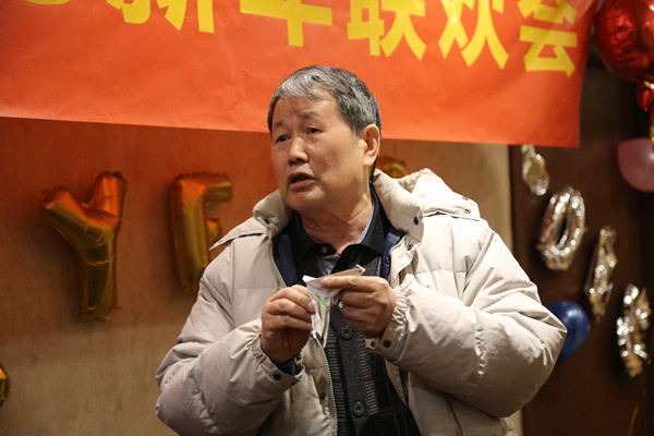 退休教师吴善茂教授即兴赋诗,祝福新年,并现场表演魔术,变出一只“吉祥鸟”,赢得阵阵掌声和笑声。