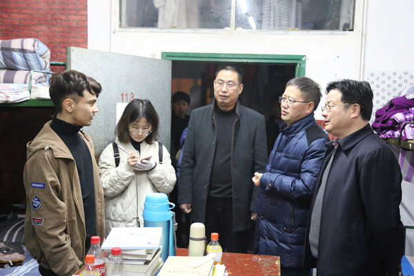 龙先琼、冷志明一行在预科学院党委书记李超的陪同下首先来到预科学院学生宿舍,问候少数民族学生,并与新疆、西藏籍少数民族学生进行了亲切交谈,就日常生活、学习情况、家庭情况、思想建设、宿舍安全隐患等方面对学生进行询问与指导,对困难学生表示深切慰问。在医学院党委副书记王元的陪同下,龙先琼、冷志明一行看望了医学院的部分学生,询问了学生的家庭情况和生活情况,希望同学们能尽快进入学习状态,针对自己的专业做出相应的学习计划,在新的学期里能够共同进步。