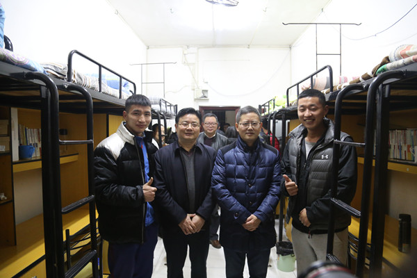 上图为龙先琼、冷志明一行在宿舍亲切问候学生