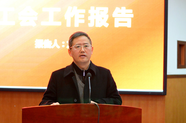 图为教代会提案组组长王群立作提案工作报告 孙立青摄