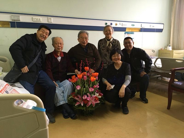 本网讯(浣竹)2017年4月,沈从文先生次子沈虎雏先生因病住院,校长白晋湘立即委派向成国教授、刘一友教授、黄毅老师赴京看望。随后向成国教授与沈虎雏老师家人一直保持联系,密切关注病情状况。日前,校党委书记游俊得知沈虎雏老师仍受疱疹困扰这一情况,决定再次委派向成国教授、郑英杰教授前往看望,邹吉文老师全程陪同。