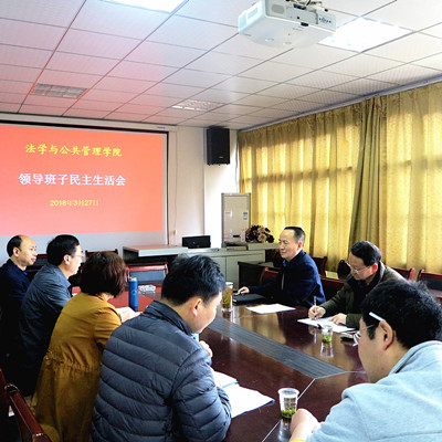 本网讯(邹蒙蒙)3月27日上午,法学与公共管理学院在院会议室召开领导班子民主生活会,副校长钟海平、党校副校长李景军到会指导。院长吴文平,党委书记彭献忠,副书记龙兴武,副院长谭正航、黄炜等相关党员领导干部出席会议。会议由彭献忠主持。