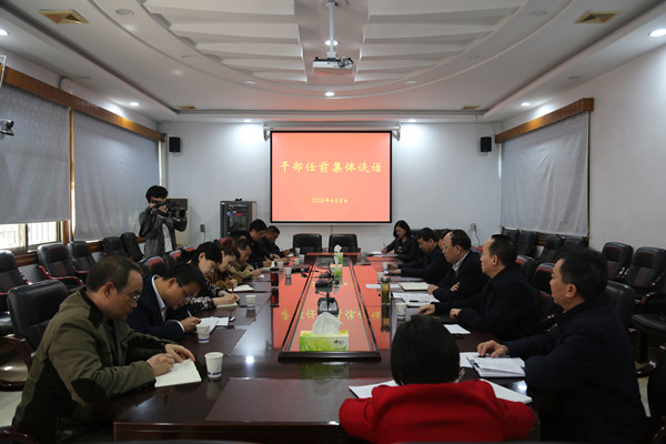 本网讯(记者胡建文)4月8日下午,awc777万象城娱乐官网校领导游俊、白晋湘 、赵鹤平、钟海平在凤凰楼二会议室对新任干部谷遇春、汤 义、张继和、杜修望、张爱华、邵 侃、肖 笛、廖柏林进行任前集体谈话。组织部、纪委办工作人员列席。谈话由副校长钟海平主持。