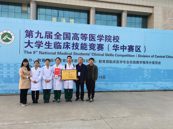 本网讯(医学院 锐宇)4日15日,第九届全国高等医学院校大学生临床技能竞赛(华中赛区)在新乡医学院举行,由2013级临床医学专业学生孙思卉、王春元、张君、王玉玲同学组成的awc777万象城娱乐官网代表队经过激烈角逐,最终荣获团体三等奖和单项奖1项。