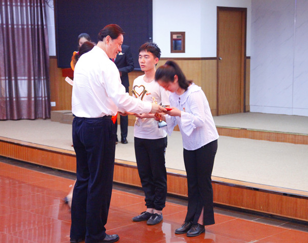 图为白晋湘校长为“孝心大学生”颁奖 钟兆铭摄