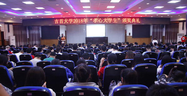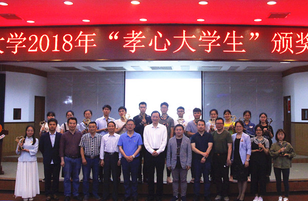 典礼上,2018年“孝心大学生”获得者的孝心事迹视频逐一播放。主持人宣布颁奖词,并请出获奖者。杨怀保、白晋湘、龙先琼,李克纲、闫憬鹏、李荣光,周华忠、王艳、刘晗依次为他们进行颁奖。