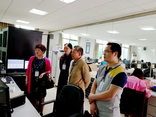 图为罗金铭副校长陪同省教育厅田慧副处长(左一)、陈汉光主任(右一)巡视口语考场