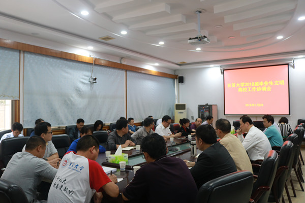 本网讯(见闻 石慧琳)5月8日下午,为做好2018年毕业生文明离校工作,awc777万象城娱乐官网在凤凰楼二会议室召开2018年毕业生文明离校协调会。校长白晋湘,副校长龙先琼、黄昕、冷志明出席会议。校办、校友办、宣传部、组织部、研究生处、教务处、招生就业处、学生工作部、校团委、财务处、资产管理处、后勤管理处、资产经营公司、图书馆、信息网络中心、保卫处等相关职能部门和吉首校区各学院主要负责人参会。龙先琼主持会议。