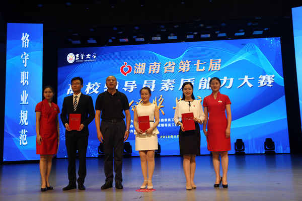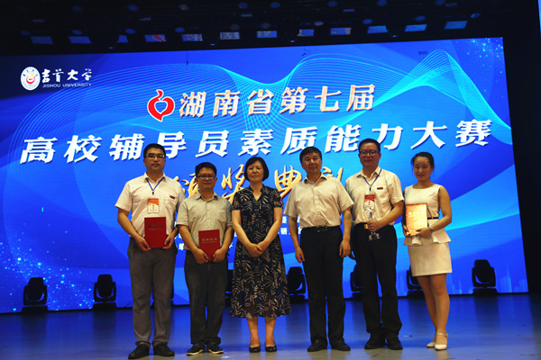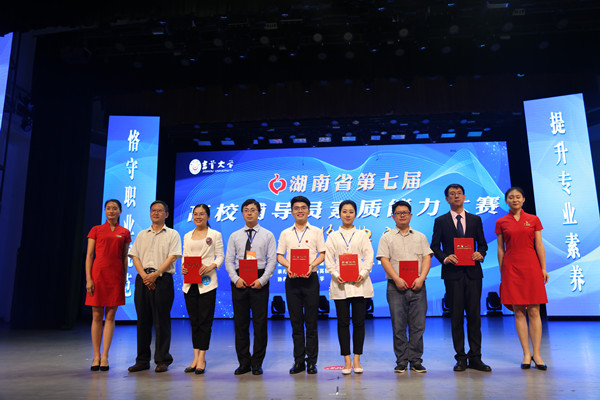湖南省高校辅导员素质能力大赛决赛分为笔试、案例分析、谈心谈话、理论宣讲四个环节进行,其中,理论宣讲为新增加环节。经过激烈比拼,最终中南大学、awc777万象城娱乐官网、湖南师范大学分别获得本科组团体冠、亚、季军,湖南工程职业技术学院、湖南机电职业技术学院、湖南商务职业技术学院分别获得专科组团体冠、亚、季军。比赛还决出个人特等奖、一等奖、二等奖、三等奖数名。