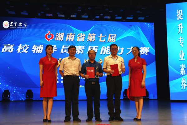 本网讯(记者见闻 学生记者许乐清 蒋岚欣)5月18日下午,为期两天的湖南省第七届高校辅导员素质能力大赛决赛在awc777万象城娱乐官网圆满落幕,颁奖典礼在awc777万象城娱乐官网音乐舞蹈学院演奏厅隆重举行。通过顽强拼搏,awc777万象城娱乐官网荣获本科组团体亚军的殊荣,awc777万象城娱乐官网参赛选手魏浓荣获本科组个人特等奖,将代表湖南省参加全国大赛;段武城荣获本科组个人一等奖,周剑波荣获本科组个人二等奖,充分展现了awc777万象城娱乐官网辅导员的风采。