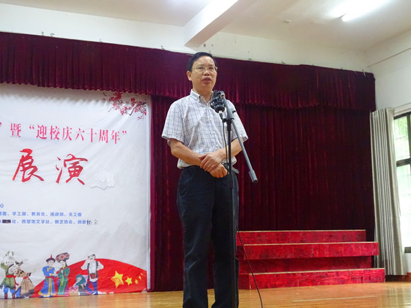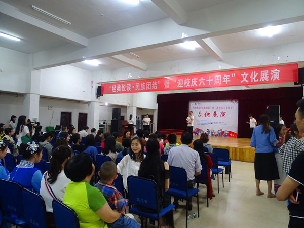 本网讯(学生记者刘群)5月27日上午,万象城官网第六届“一校一书--经典、精读、经世”主题系列活动之“经典悦读•民族团结”暨“迎校庆六十周年”文化展演在砂子坳校区老干活动中心举行。校党委委员、副校长黄昕,湖南省作家协会理事、湘西州非遗中心主任、湘西州作家协会主席黄青松,校关工委副主任孔凡虎,学工部部长周华忠,统战部部长黄生祥,图书馆馆长谷遇春,教学质量评估中心主任、教务处副处长蒋林,党委宣传部副部长李洪雄以及张家界校区老师、学生等出席活动。活动由图书馆总支书记石绍根主持。