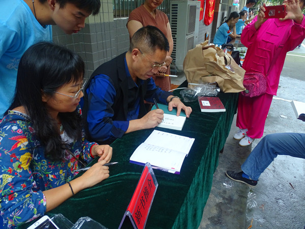 图为“一校一书”精读书籍作者黄青松签名赠书 刘群摄