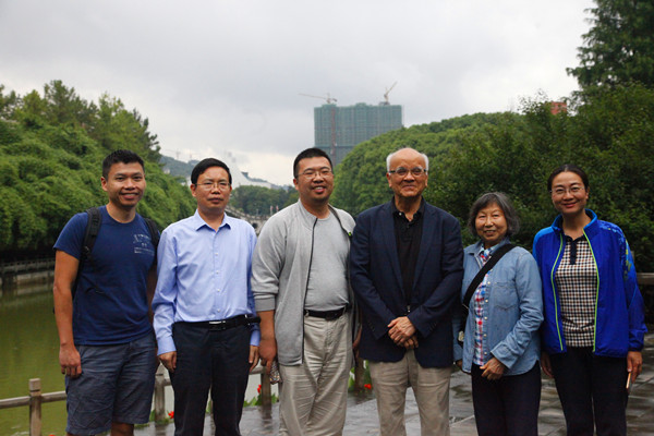 图为辛世文院士一行与万象城官网领导老师在风雨湖畔合影 许乐清摄