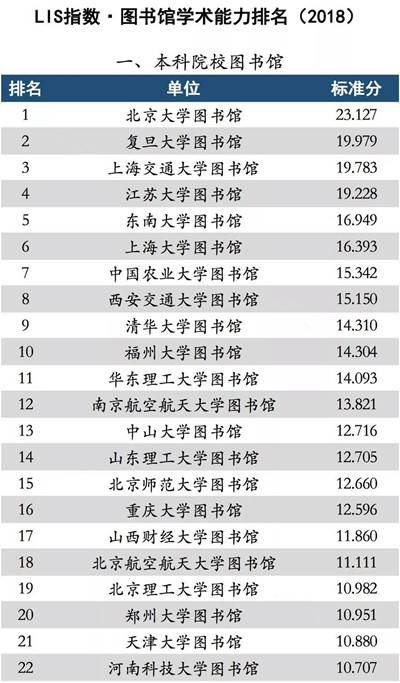 “LIS指数”是国内首个针对图书情报与档案机构的综合实力评价指数。评价体系涵盖了科研能力、学科质量、社会评价和负面指标等4大类17项指标,使用的都是最能体现图情档学科实力的关键指标,是一种更科学、分权重、多层次、符合学科特色的综合评价报告。