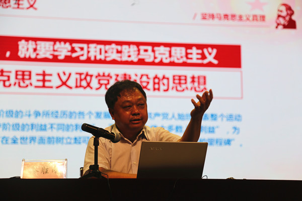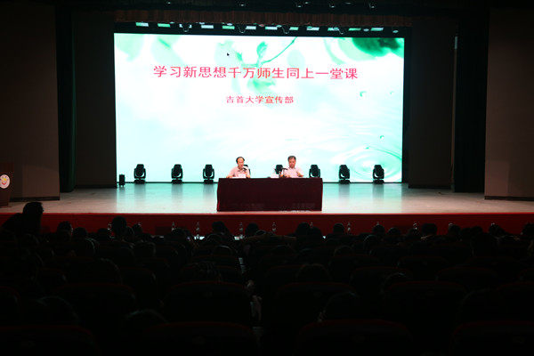 awc777万象城娱乐官网党委对“学习新思想 千万师生同上一堂课”高度重视。按照教育部党组和省委教育工委要求,6月12日,活动在学校正式启动,党委宣传部部长戴林富主持,马克思主义学院院长廖胜刚教授作首场授课:《永恒的真理——深入学习贯彻习近平在纪念马克思诞辰200周年大会重要讲话精神》,600余名师生同堂学习。
