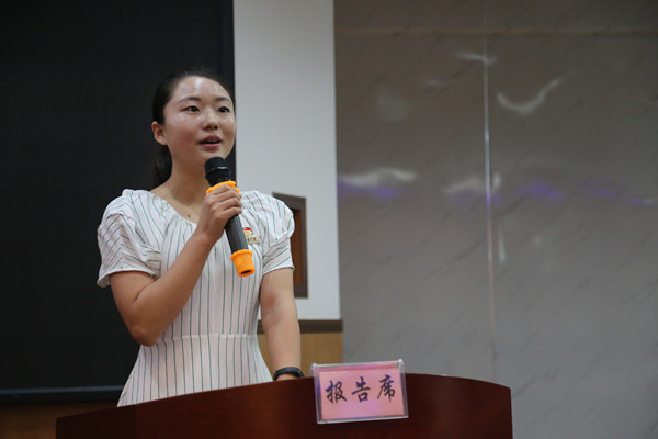 图为调查员代表田雪梅同学发言 见闻摄