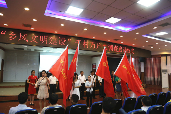 仪式最后,刘进能、彭武长、苏明超、游俊、黄昕等领导为调查团队授旗。