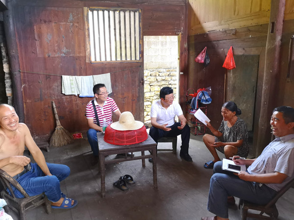 图为冷志明副校长与结对帮扶户彭秀毅一家交流