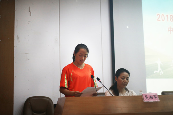 学员代表张君瑶发言。她说很感谢awc777万象城娱乐官网提供此次培训机会,并表示全体学员均会按照学校要求,认真完成培训,为国家的足球事业添砖加瓦。