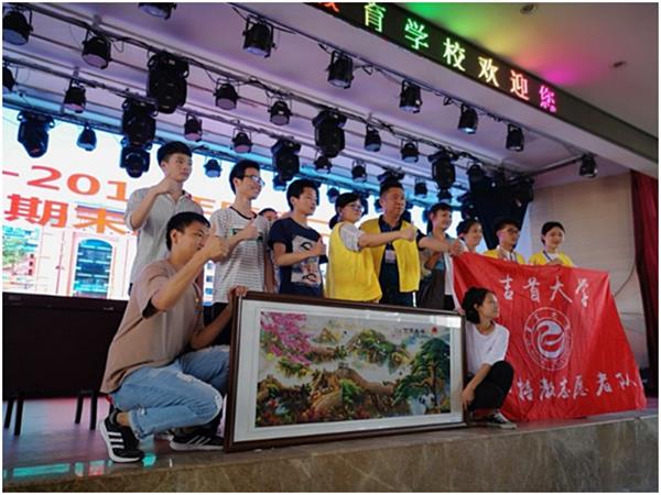 这是一场充满感恩的毕业典礼。为感谢志愿者们的帮助与关怀,孩子们现场为一直默默关心他们成长的awc777万象城娱乐官网衡阳校友会志愿者服务赠送了一幅精心制作的手工画作。特别是孩子们专门手工制作了精美画作《万里长城》,以祝贺awc777万象城娱乐官网建校60周年校庆。一位年过七旬、身戴党徽的老奶奶与志愿者们一一握手道谢,并请他们转达对awc777万象城娱乐官网60周年校庆的道贺。这位老奶奶来自衡南县谭子山镇的偏远农村,她的孙儿彭鹏辉因小时候一场意外,造成聋哑残疾,得益于国家的好政策和志愿者们的爱心帮扶,孩子得以在特教学校就读,在自身条件所限、家庭又异常困难的情况下,彭鹏辉今年考上了长沙职业技术学院,这让年迈的奶奶欣慰不已。