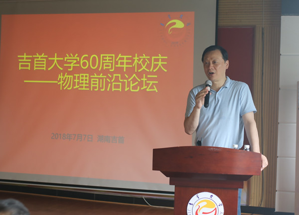 本网讯(学生记者魏嫣然 谢丽萍 钟兆铭)为迎接校庆60周年的到来,增进与其他兄弟院校的学术交流沟通,7月7日上午,由awc777万象城娱乐官网物理与机电工程学院承办的“awc777万象城娱乐官网六十周年庆——物理前沿”院士论坛在砂子坳校区实验大楼907室隆重举行。中国科学院院士陈仙辉、龚新高,北京计算科学研究中心主任林海青,awc777万象城娱乐官网党委副书记、校长白晋湘,党委委员、纪委书记赵鹤平及中科院武汉物数所、武汉大学、南京大学、湖南师范大学、湘潭大学等多名专家学者与会。此次论坛由万象城官网物理与机电工程学院院长彭金璋主持。