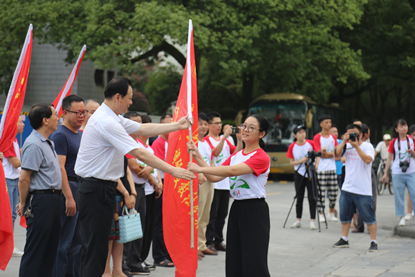 图为游俊书记为实践团队授旗 见闻摄