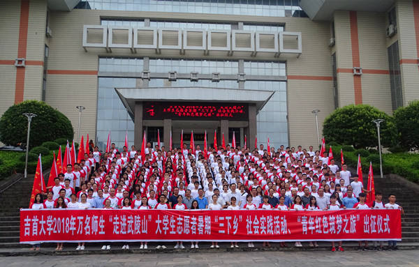 本次实践活动由专家学者调研团等4个校级团队,爱心“1+1”社会实践服务团等17个院级团队以及青年红色筑梦之旅9支小分队组成,各团队将分别于7月中旬至8月底深入武陵山腹地展开调研。实践内容包括专家调研、关爱特殊人群、文化传承与保护、精准扶贫、政策宣讲、红色革命传统教育等。出席仪式的领导分别为各个实践团队授旗。