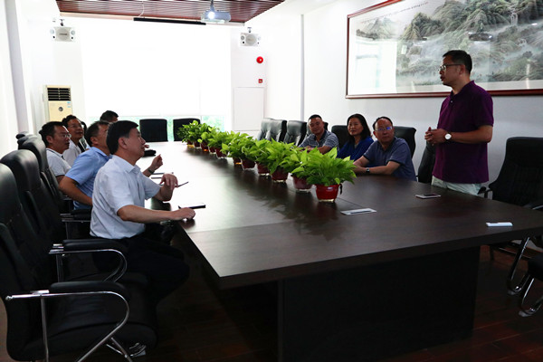 图为游俊、赵鹤平一行参观考察卢强校友的奋达教育集团