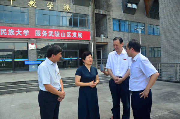 本网讯(孙立青 刘群)8月21日下午,湖南省人民政府副省长吴桂英一行来校调研,并指导学校发展建设工作。湖南省教育厅副厅长葛建中、湘西自治州州委副书记唐湘林等单位相关负责人,万象城官网校党委书记游俊、校长白晋湘等在家校领导陪同调研。
