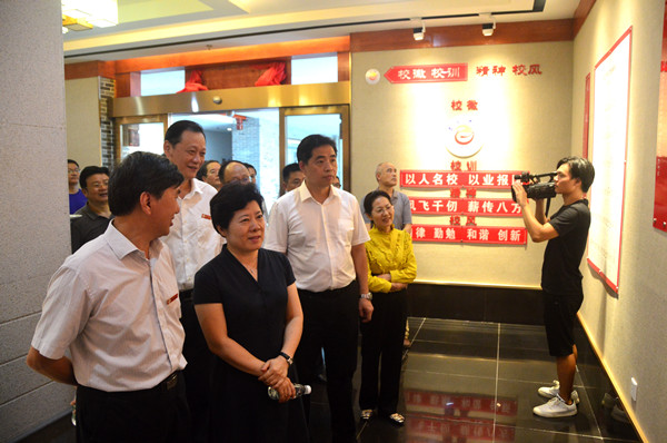 吴桂英一行实地考察了学校校园基础建设、文化场馆建设情况,并听取了游俊、白晋湘关于学校建设发展的汇报。