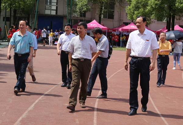 图为游俊书记、白晋湘校长一行在新生报到现场检查指导 钟兆铭摄