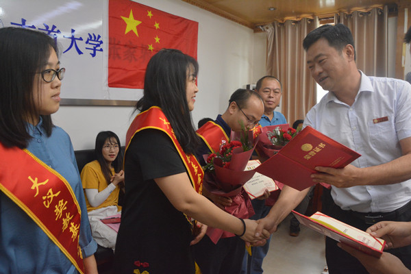 图为王绯副校长为获奖教师颁奖 罗金元摄