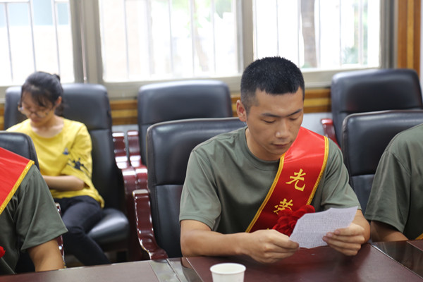 战士代表裴永康发表讲话,各学院党政负责人为16名入伍新兵送出了自己的寄语。