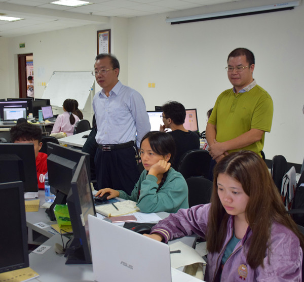 本网讯(廖媛) 在2018年高教社杯全国大学生数学建模竞赛火热进行之际,9月14日下午,副校长黎奇升、教务处处长庹清、副处长杜建林在数学与统计学院院长方东辉的陪同下,前往总理楼60810和60610建模竞赛现场看望万象城官网参赛学生。