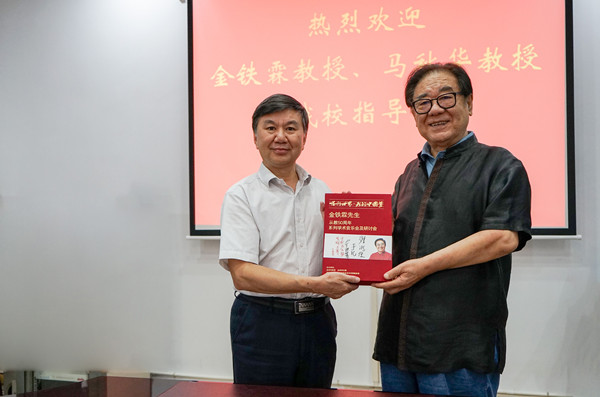 图为金铁霖教授赠送礼物给游俊书记 李兰摄