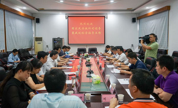 本网讯(李兰 张震)9月20日上午,国家民委教育科技司司长田联刚、副司长李学锋、高等教育处处长杨慕云,湖南省民宗委党组成员、副主任何其雄,省民宗委文化教育处处长朱朝晖等来校指导工作。座谈会在凤凰楼二会议室举行,校党委书记游俊,校长白晋湘,副校长黄昕、冷志明等出席座谈会。会议由游俊主持。