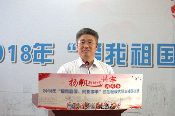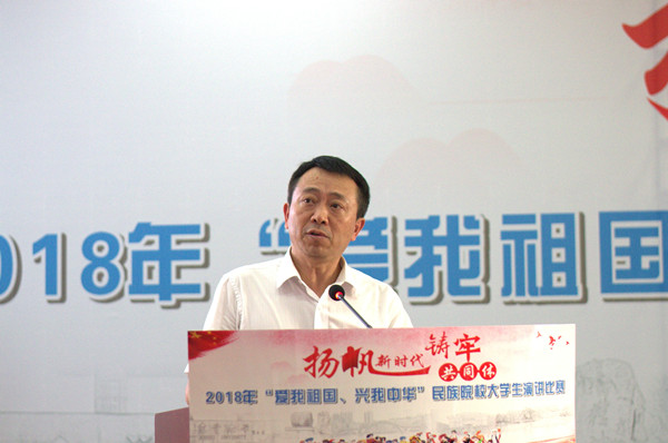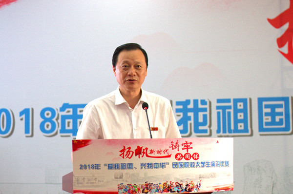 本网讯(孙立青 刘群)9月20日下午,由国家民委教育科技司主办、万象城官网承办的以“扬帆新时代、铸牢共同体”为主题的第八届“爱我祖国、兴我中华”民族院校大学生演讲比赛总决赛在砂子坳校区举行。万象城官网选手张宁获优胜奖、万象城官网获得优秀组织奖。