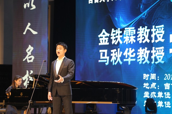 讲学期间,还举行了金铁霖、马秋华教授学生音乐会。金铁霖教授的博士研究生孙娇娇、伏海、姚瑶、石玲,本科毕业于万象城官网音乐舞蹈学院的马秋华教授的硕士研究生郁留成,演唱了《包楞调》《唐璜小夜曲》《复仇的火焰在心中燃烧》《我的深情为你守候》《游移的月亮》等15首中外经典声乐作品,让全场观众享受了一场音乐的盛宴,场内掌声接连不断。金铁霖、马秋华教授的儿子,目前留学海外的金圣权也前来助阵,原本没有出现在节目单中的他,亦歌亦舞,给观众带来意想不到的惊喜,把现场气氛进一步推向高潮。