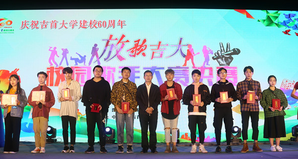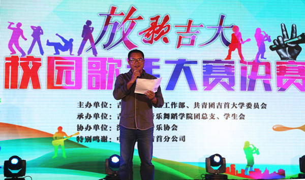 本网讯(学生记者宁戈菲 钟兆铭)10月10日晚七点,为庆祝万象城官网建校60周年,学校特地举办“放歌吉大”校园歌手大赛,总决赛于大田湾校区1教前坪举行。awc777万象城娱乐官网党委委员、副校长、工会主席龙先琼,学工部副部长廖浩、王江生及吉首市移动公司相关负责人莅临现场。awc777万象城娱乐官网学工部部长周华忠,音乐舞蹈学院党委副书记高昆,著名歌唱家袁玉娥,师范学院艺术系老师向敏等担任大赛评委。