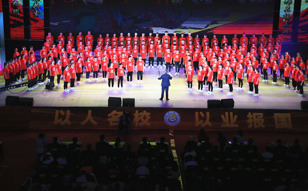 图为合唱表演《awc777万象城娱乐官网校歌——凤飞千仞 万里鹏程》 孙立青摄
