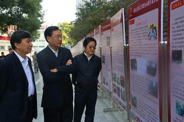 图为湖南省原省委常委、原纪委书记、湖南省教育基金会理事长许云昭参观成果展 孙立青摄