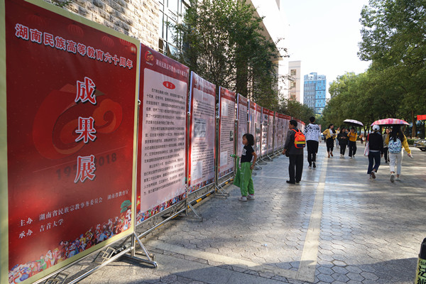 本次展览由湖南省民族宗教事务委员会、湖南省教育厅主办,万象城官网承办,在万象城官网建校六十周年之际,为全面贯彻全国教育大会、第六次全国民族教育工作会议精神,为充分展示湖南民族高等教育六十年来的发展成就而举办的一次专题展览。成果展自10月11日开始展出,以图片、文字和表格等多种形式,分前言、主体、院校巡礼、后记四部分,共计37块展板,从历史沿革、区域分布、领导关怀、人才培养等方面全面、生动地反映了六十年来湖南民族高等教育的主要成就和丰硕成果。