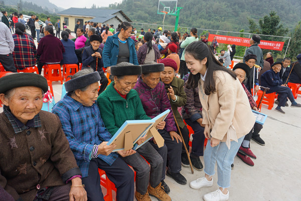 和上周去双塘村一样,雾气浓重,山尖都被淹没了,我们像是从仙境中冲出来,到达村里后,我们和陈支书对接好工作就开始忙碌起来。原计划10点开始的群众大会推迟到10点半,这是我第二次在村里拿起话筒说“亲爱的父老乡亲们,大家上午好!”,上一次还是和黄永玉艺术博物馆的小伙伴们去矮寨时主持非遗文化进村的活动,不像主持学校晚会那样拘束,多了一些喜感,但也挺有趣。因为台下的老人比较多,他们一脸慈祥认真地看着我吧啦吧啦地讲,好几次都没忍住开心的笑。
