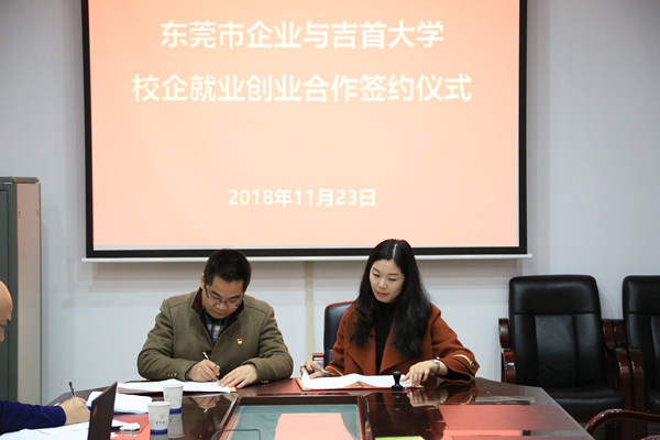 随后,东莞市杉木电子有限公司、东莞市嘉龙海杰电子科技有限公司、东莞市沃德精密机械有限公司、东莞市凯金新能源科技股份有限公司、东莞市虎门学易优培训中心有限公司、东莞市中镓半导体科技有限公司、东莞市兆生家具有限公司分别与学校各单位、学院签约了8份人才就业创业合作协议。