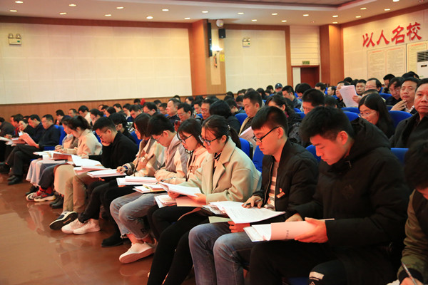 校党委书记游俊作主题报告。他从强化“四个意识”、基本形成了大思政工作格局、培育了一批思想政治教育品牌、提升了广大师生的思想政治素养、促进了学校事业的建设发展五个方面,总结了近两年来学校不断加强和改进思想政治工作取得的显著成效。就如何加强和改进学校思想政治工作,游俊提出七点要求:一是坚持正确的办学方向,牢牢把握立德树人的根本要求;二是切实做好“六个融入”,着力夯实师生员工思想基础;三是健全完善体制机制,落实“三全育人”基本要求;四是发挥舆论导向作用,营造风清气正育人环境;五是加强队伍建设,提升思政工作专业化水平;六是实施文化立校战略,着力推进文化铸魂工程;七是加强全面领导,提供思政工作坚强保障。游俊最后强调,做好思想政治工作是党中央赋予学校的一项重要的政治任务,全校上下务必高度重视,切实提高政治站位,强化责任担当,以习近平新时代中国特色社会主义思想为指导,全面贯彻落实习近平总书记在全国高校思想政治工作会议上的重要讲话,以及全国、全省高校思想政治工作会议精神,推动学校思想政治工作再上新台阶。