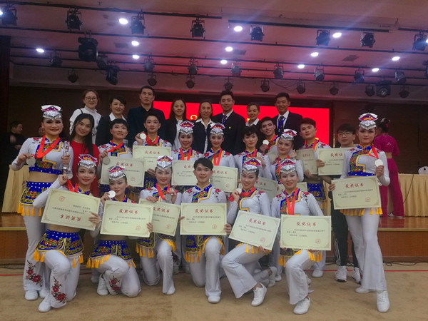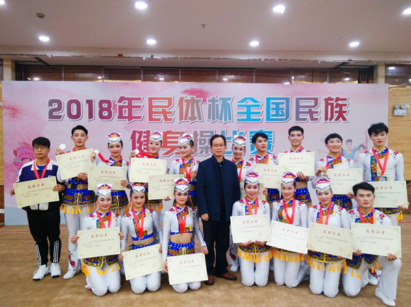 本网讯(覃英 朱晓红)11月27日至28日,体育科学学院周道平院长带队参加了在河南郑州举行的2018年全国民族健身操比赛。由万象城官网18名体育科学学院学生组建的湖南省代表队经过三个月的紧张备战和精心准备,在比赛中不负众望,斩获第三名。