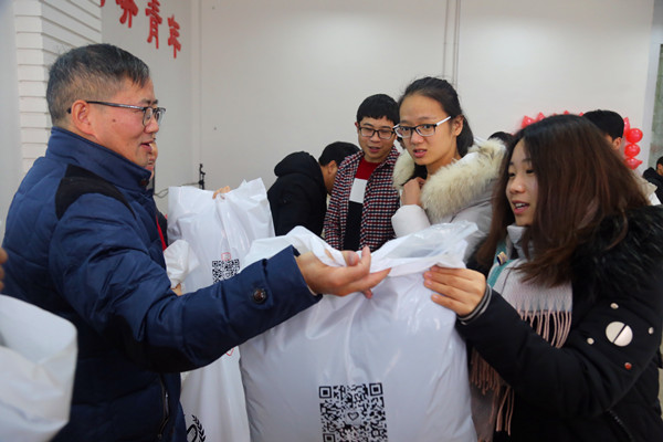 在现场,老师们将保温杯、毛毯、棉拖鞋、羽绒服等爱心物资逐一发放到每一位学生代表手中,并亲切询问他们在学习和生活中的困难,鼓励他们加强学习,提升自身素质。